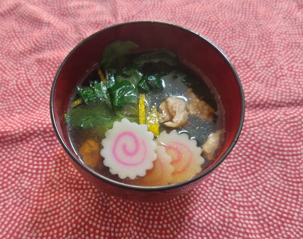 家族が一番楽しみにしている我が家のお雑煮 関東ですので醬油ベース(昆布とかつお節のだし)ですね。 鶏肉・小松菜・みつ葉・なると・ゆず
