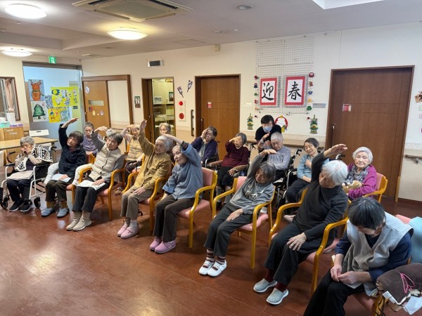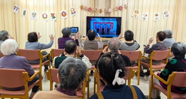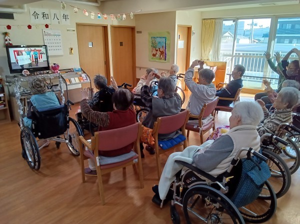 テレビ画面の中ではありますがご入居の皆様に新年を味わっていただきたい(エピソード記憶)、